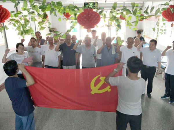 党支部和老党员一起面向党旗,重温入党誓词。随后大家分头行动,有的跟老党员谈心交流,有的帮助老人打扫卫生,整理房间。