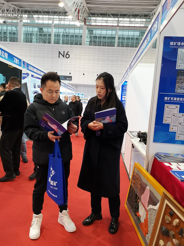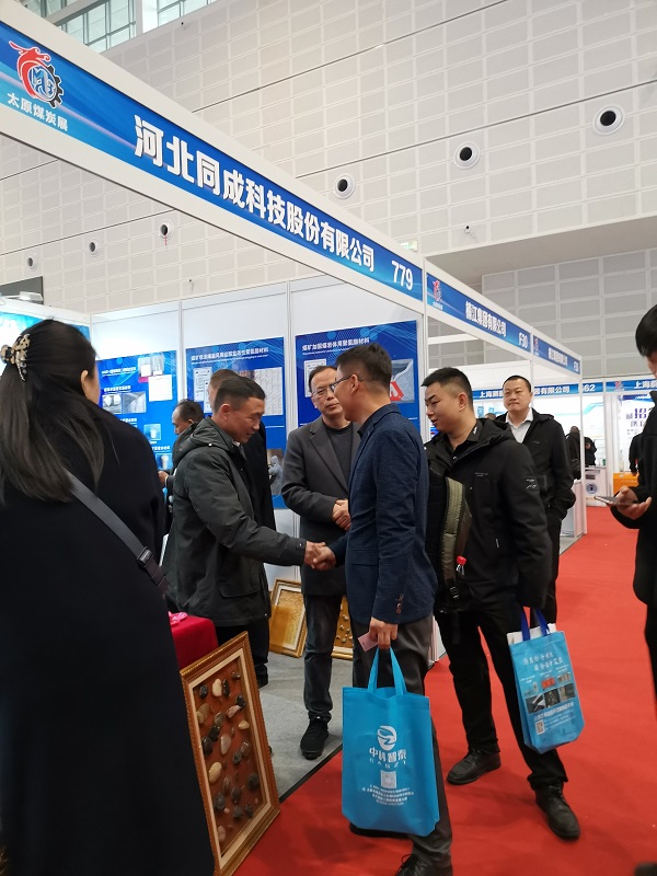 同成股份展厅通过企业宣传片、展板、产品试块、现场讲解等方式,全方位展示了企业产品和创新成果:矿用高分子化学注浆材料及矿山灾害治理新技术等。吸引了众多参会者驻足参观、咨询交流。