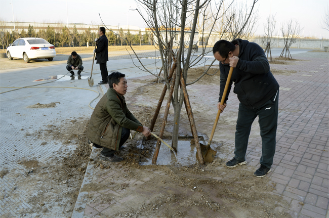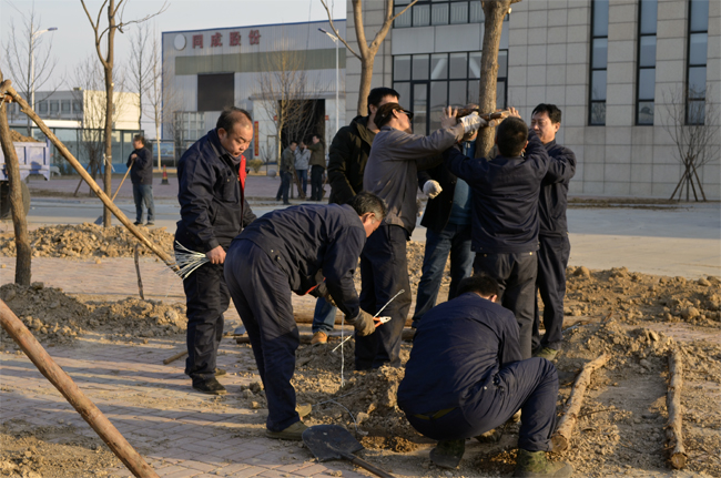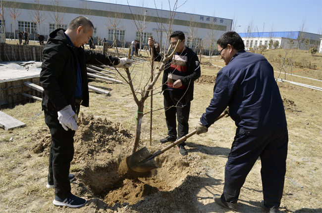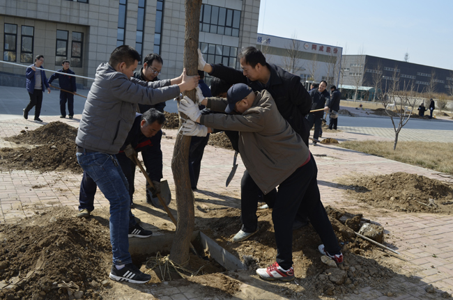 春回大地万物苏,植树添绿正当时。又到了一年一度的植树节。2019年3月12日,阳光灿烂,春光正好,公司工会和党支部组织员工开展建设绿色企业的植树活动,本次植树主要是增种、补种。活动现场,公司领导身先士卒,广大员工也干劲十足。挖坑、扶树、培土、加固树木、浇水等环节繁忙热闹。
