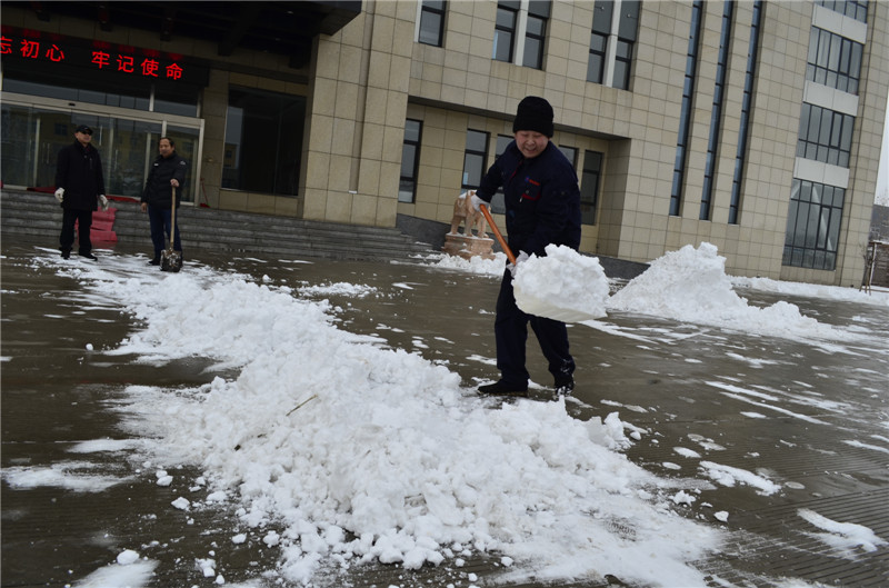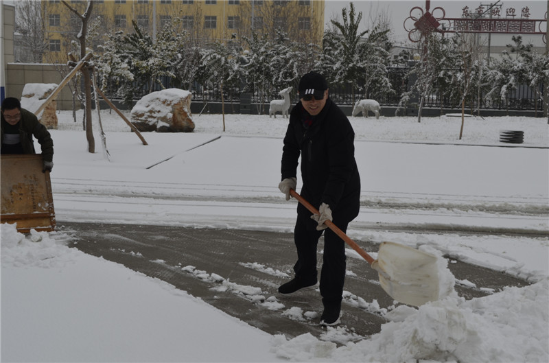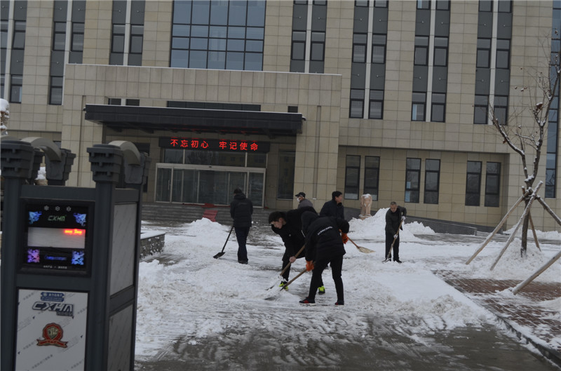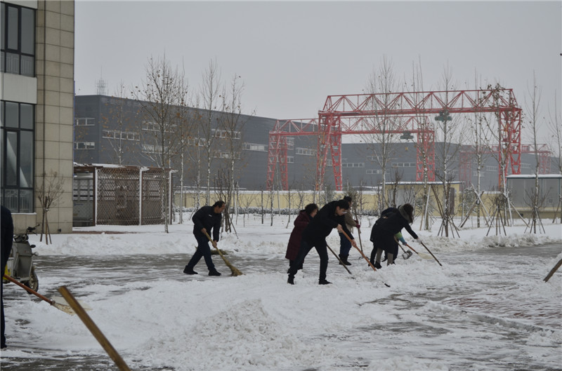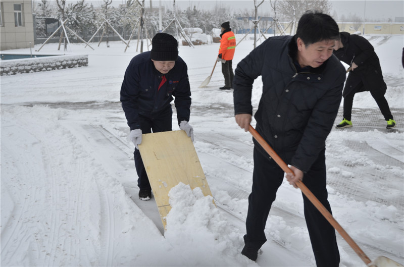 2020年1月6日,一场大雪覆盖了厂区,为保障道路通畅、员工出行方便,在党支部书记的带领下,员工积极开展冰雪清除行动,对院内和周边道路进行了清扫。