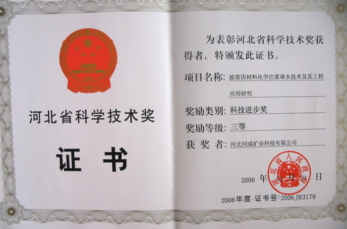 煤矿化学注浆堵水技术(获河北省科技进步三等奖)更新日期:2018-09-05